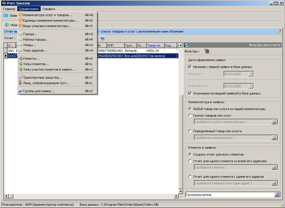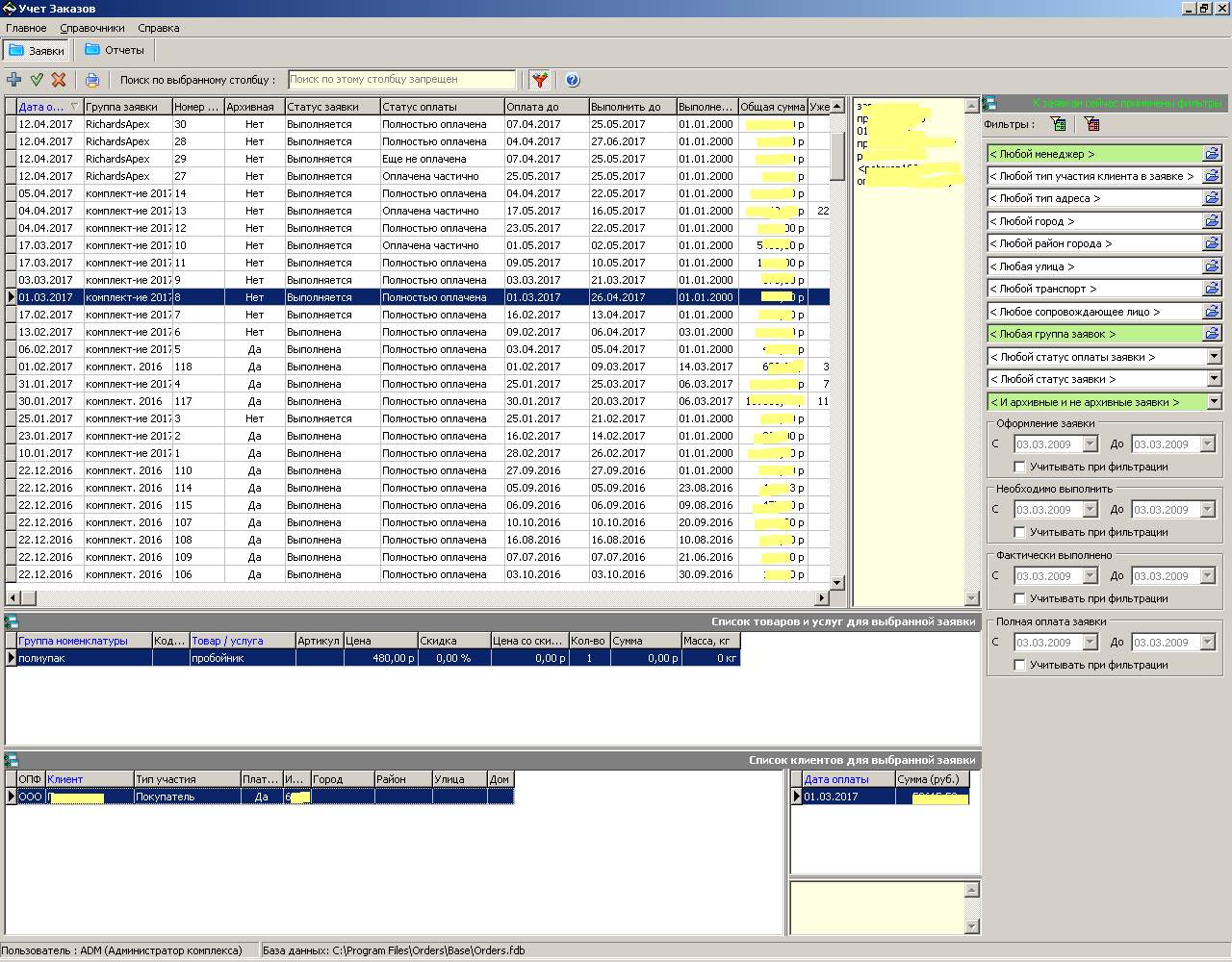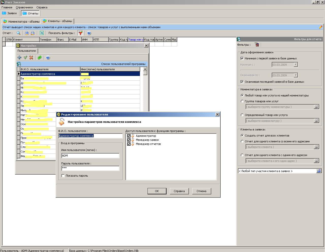 Сетевая программа для небольших организаций «Учёт Заказов 1.0» служит для оформления заказов или заявок от клиентов. В программе одновременно могут работать несколько менеджеров, каждому менеджеру можно присвоить определённые права.